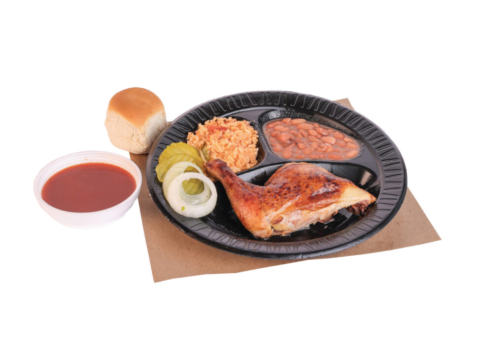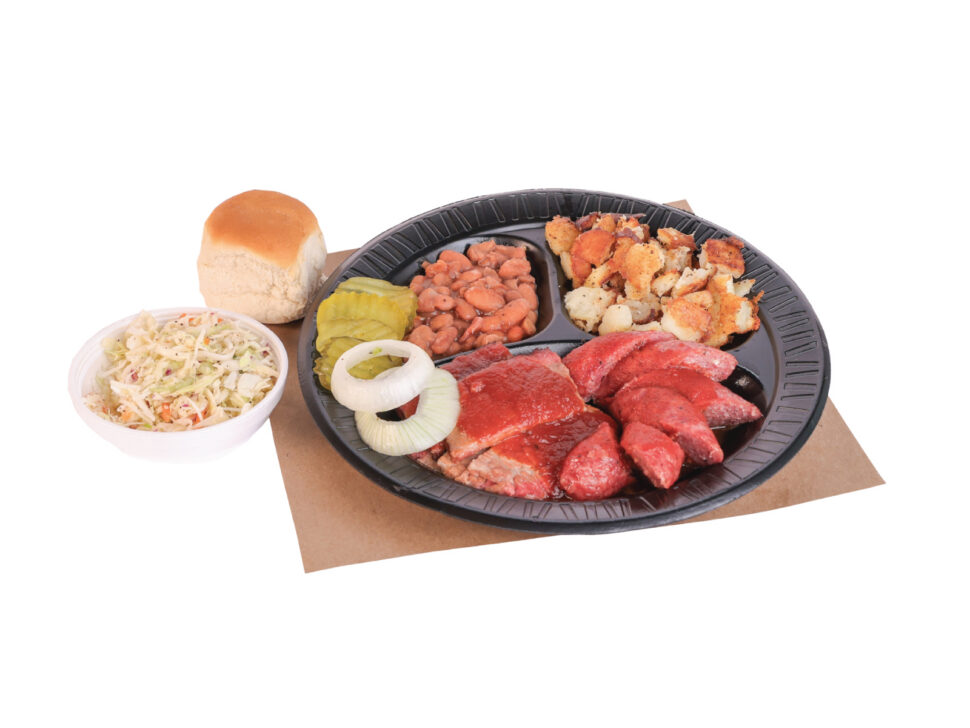 1 Meat, 2 Side Orders with choice of Beef Brisket, BBQ Chicken, Turkey Breast, or Sausage. *Please choose from pinto beans, potato salad, coleslaw, Spanish rice, green beans, hash browns, or french fries.