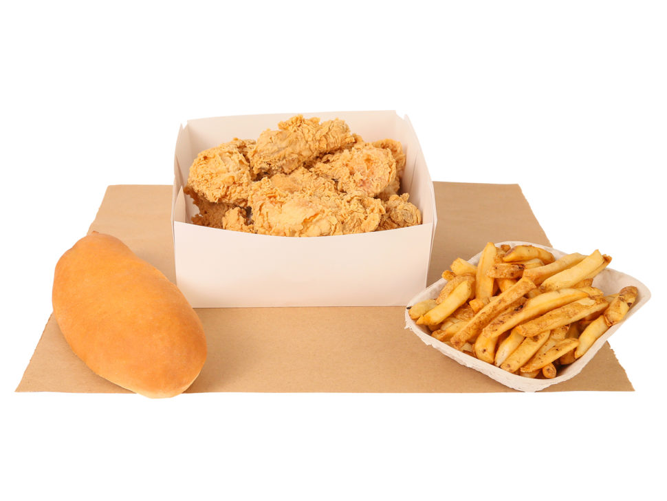 3 Pc. Fried Chicken Our Choice, fries & dinner roll.