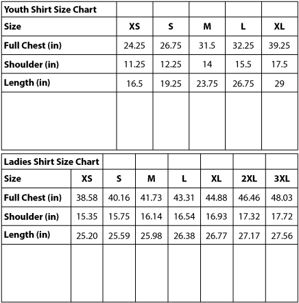 | Size | Youth X-Small, Youth Small, Youth Medium, Youth Large, Youth X-Large, Women's X-Small, Women's Small, Women's Medium, Women's Large, Women's X-Large, Women's XX-Large, Women's XXX-Large |